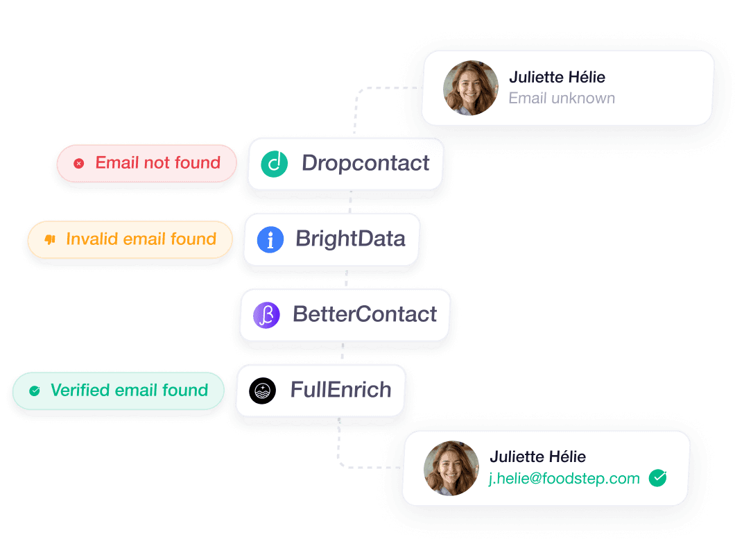 Encuentre más del 61 % de los correos profesionales de sus prospectos con el enriquecimiento en cascada de Waalaxy. Extraiga emails verificados directamente desde LinkedIn con un clic y empiece a contactar al instante a las personas adecuadas.