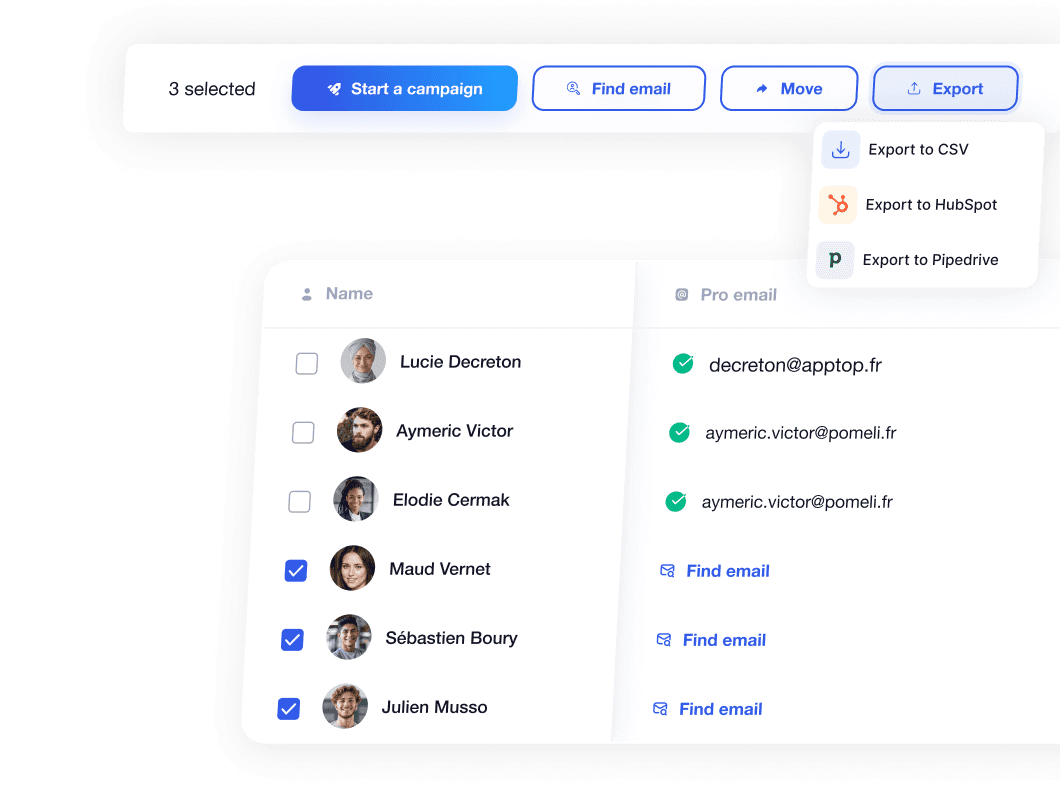 Encuentre emails directamente desde un perfil de LinkedIn, envíelos a su CRM y lance su outreach multicanal en minutos.